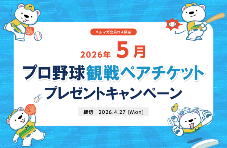 日本ハウズイングがロゴ等を掲出している3球場にて2024年5月に実施されるプロ野球の公式戦観戦ペアチケットを、メルマガ会員さまの中から抽選で3組6名様にプレゼントします!