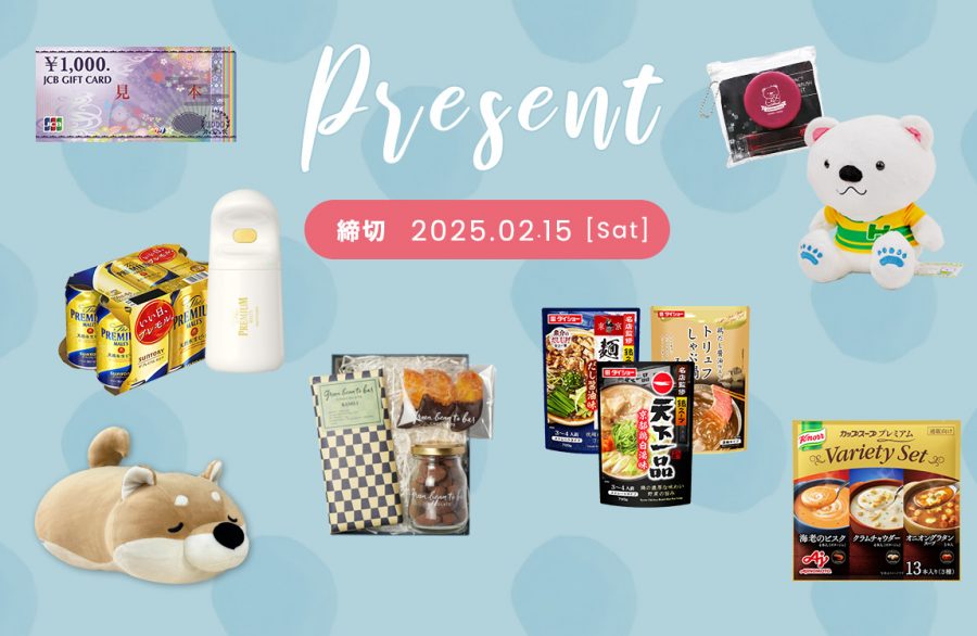 2025年の冬のプレゼントのテーマは『ココロもカラダも温めよう!!~寒い季節のおうち時間を充実させる、あったかグッズやグルメをセレクトしてお届け~』。合計48名様に当たります。
