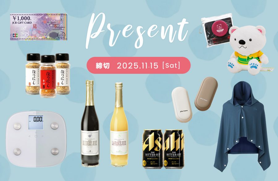 3ヶ⽉に1回、季節ごとに素敵なプレゼントが当たるチャンス!