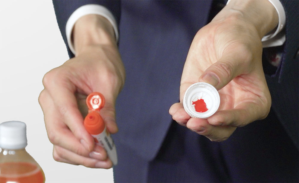 「このフルーツが選ばれることは最初から分かっていたんです」などと言って、ペットボトルを静かに手に取り、勢いよく振ります。