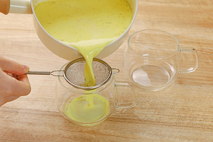 生のショウガを牛乳と合わせると、ショウガに含まれる酵素の影響で牛乳が分離してしまうため、先にショウガを加熱して酵素を失活させることが、おいしく作るポイントです!
