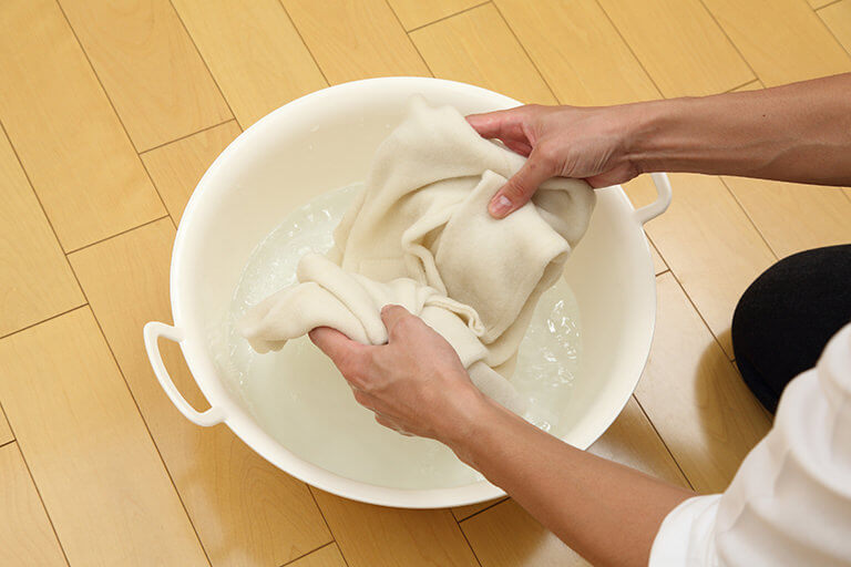 ゴシゴシもみ洗いするなど、水の中で動かしすぎると縮んでしまうのでやさしく洗いましょう。