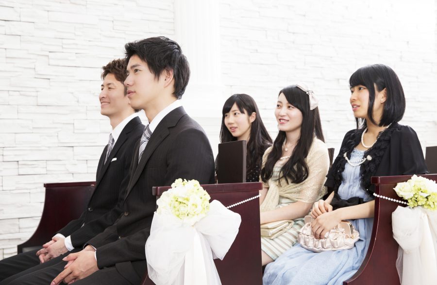 男性も女性も、晴れの日にふさわしい華やかで改まった装いを心がけましょう。